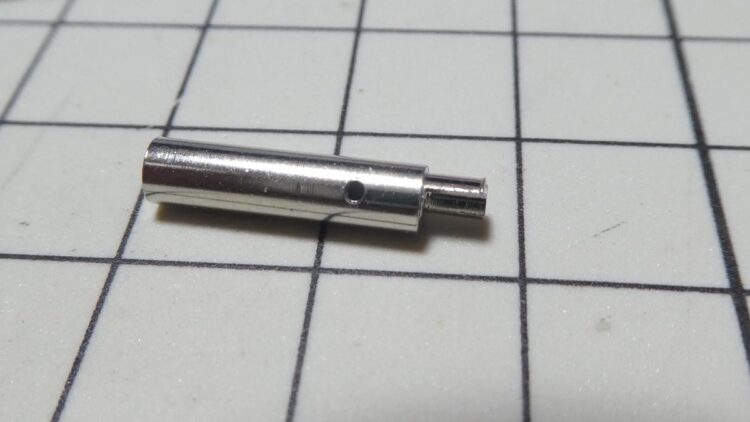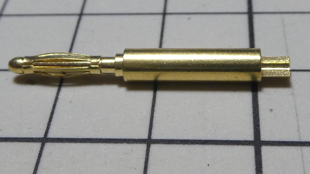バナナジャックの方には軸に細かい穴が開いていおり、その辺までプラグが入ります。空気抜きの穴か、このパーツを固定するための穴なのかよく分かりません。