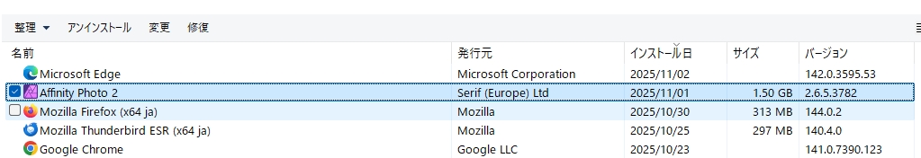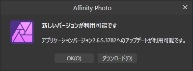 V2の最終バージョンになるかどうか分かりませんがあとは「affinity-photo-msi-2.6.5.exe」をダブルクリックすると上書きインストールできます。