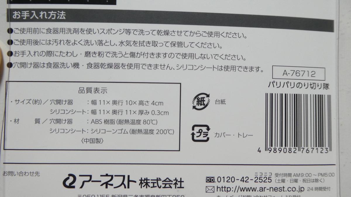 投稿日:2025/12/4 更新:2025/12/4 コメント 0件 生活 のり切り隊, アーネスト, 切れない, 海苔, 穴開け「アーネスト 弁当 海苔 おにぎり パリパリ のり切り隊 A-76712」を買ってみました。価格はアマゾンで1,052円でした。