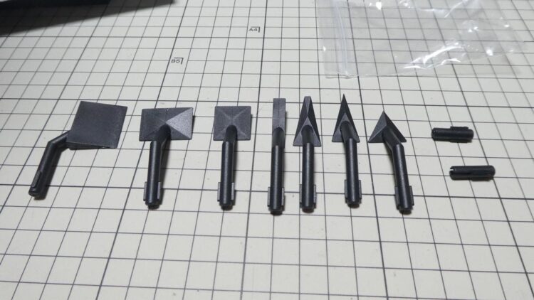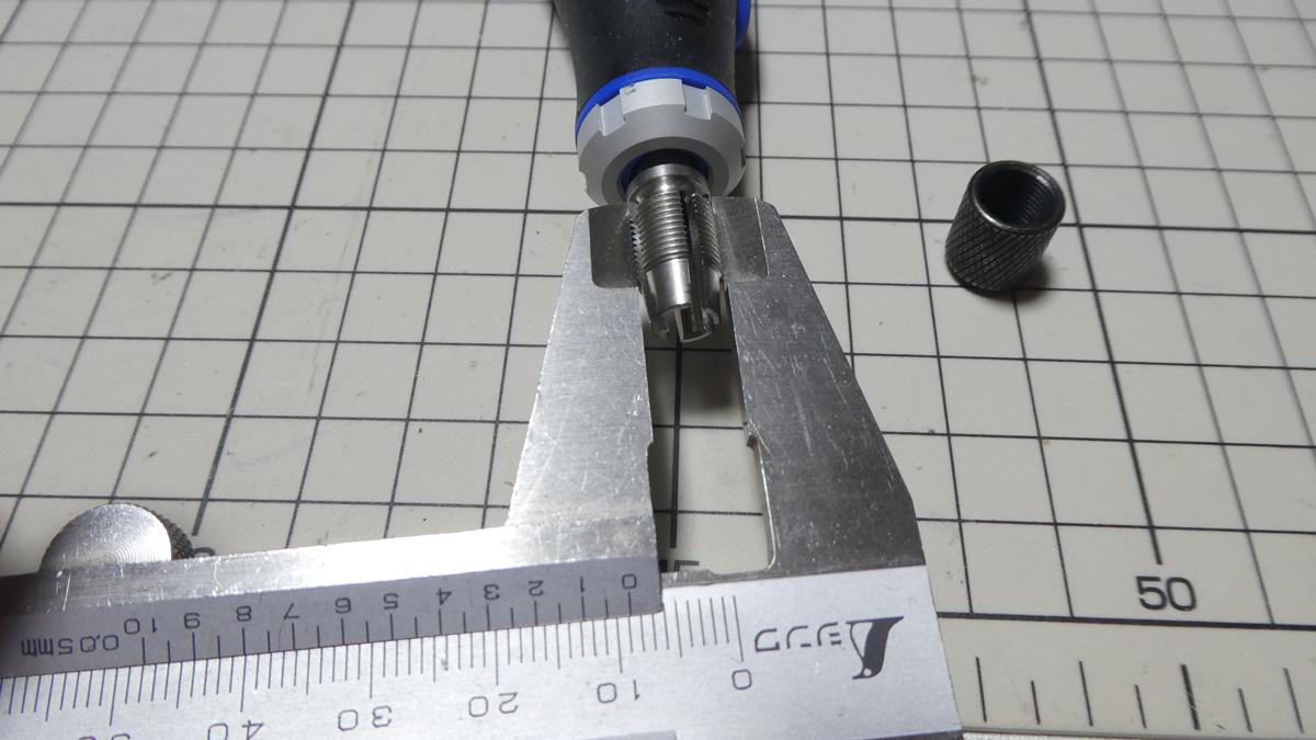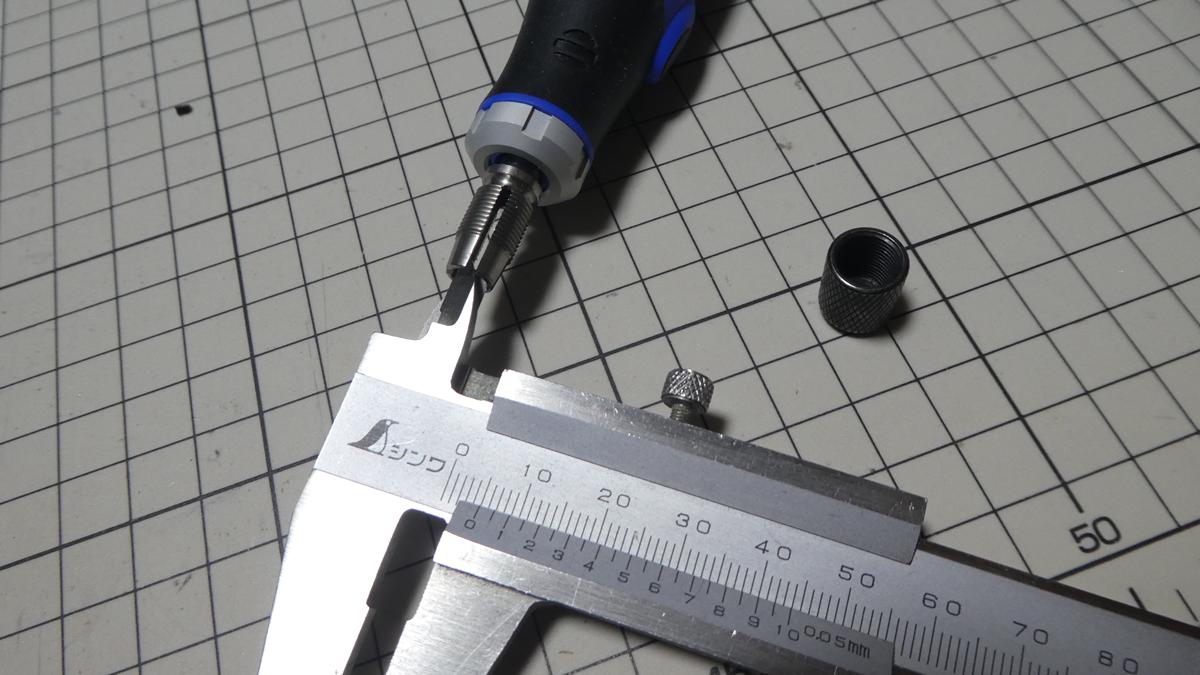 アルティマ用先端アタッチメント(9種)です。右の2つは軸経2.35φ、3.0φの工具が取り付けられるコレットチャックです。