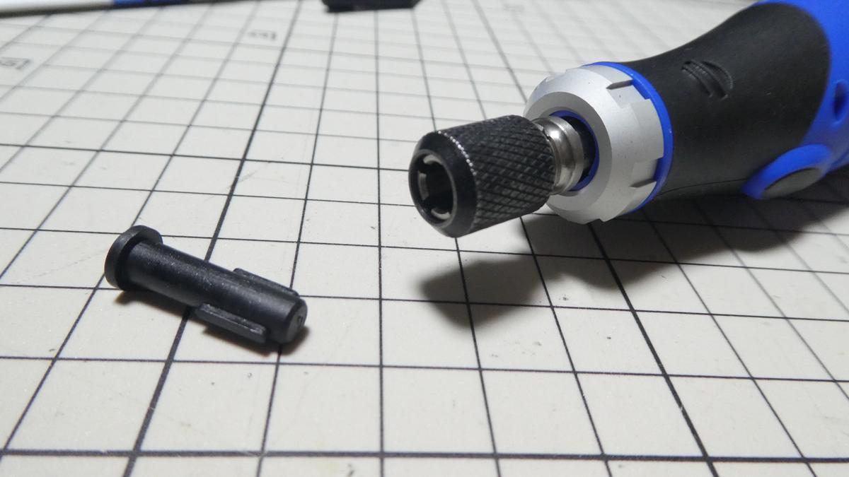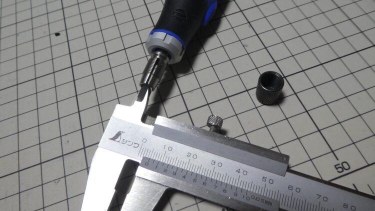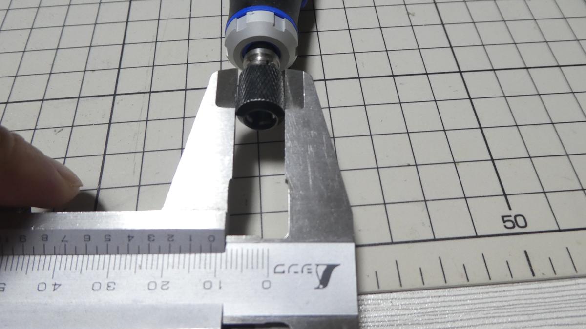 アタッチメントの突起は回転系の工具じゃないのでなくてもいいような気がしますが、このスリットがあるお陰で常に一定の角度で固定できるので便利といえば便利です。