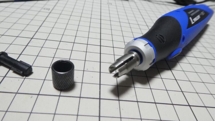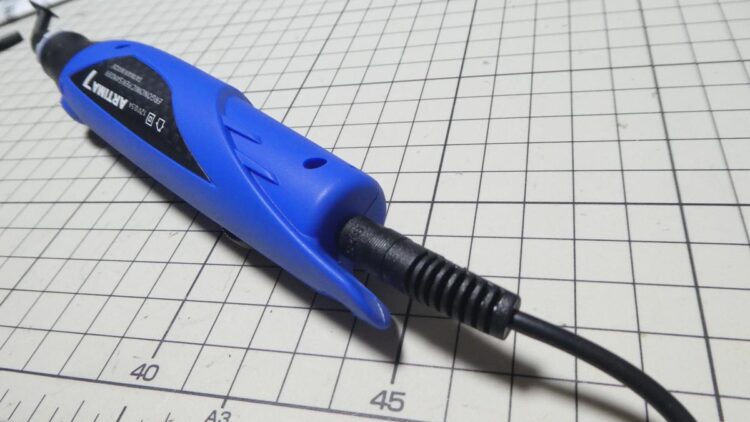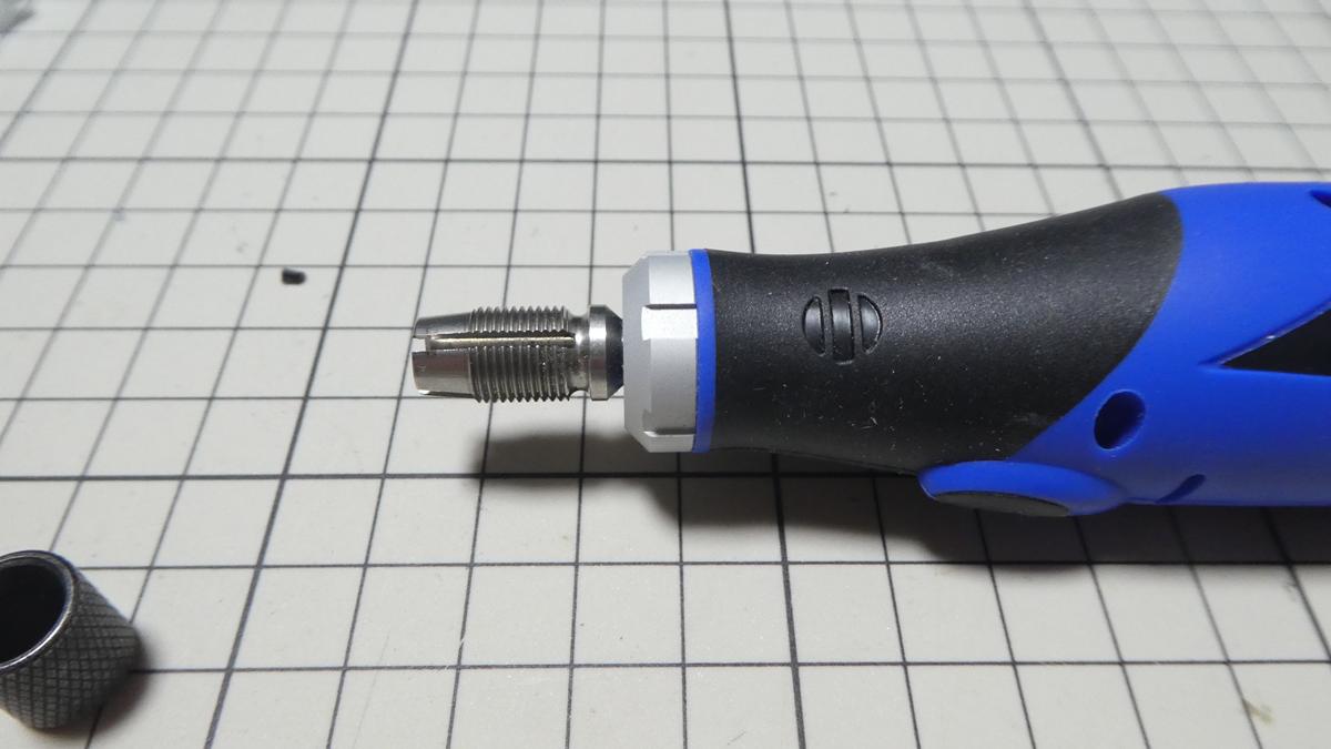 動作音は徐々に速度を上げていくほど高音になる感じです。最速にすると甲高い音がしますが、そんな速くしなくても削れるので静かに使えます。ただ、遅いと対象物と一緒に動いて削れにくいことがあるのでその時は速くする感じで使っています。