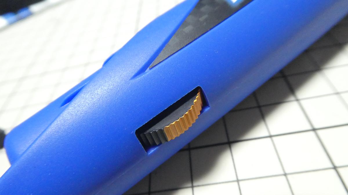 イメージしやすいようにカッターナイフの大と小を置いていますがかなり小さいで使いやすそうです。
