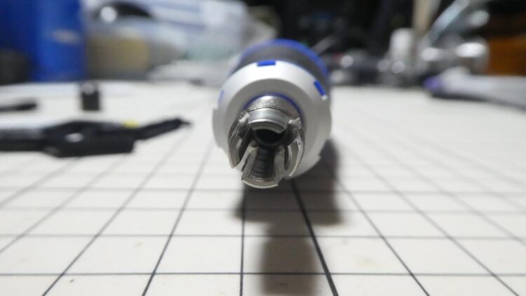 時々回転数が変わる音がするんですがそれがフィードバック機能が効いているんだと思います。安物のホビールーターとかだとトルクが掛かるとよく止まりますがでこの製品は圧を掛けるターボだ掛かる感じで削れるので気持ちいいです。先端パーツは個人的には狭い長方形(ARB02)だけで十分な感じですね。