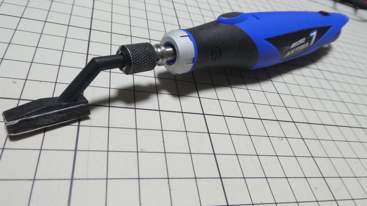電動だとガンガンに削れる印象ですがしょせん紙ヤスリなので速くしてもそれなりにしか削れません。ただ、めっちゃ楽ですし、コーナーとかの正確なヤスリ掛けもできます。