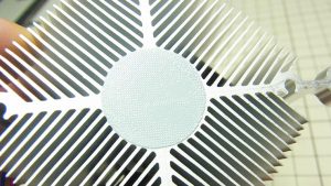 この時、ヒートシンクのもう一方が浮いてくるのでそうならないように押さえてつつ、