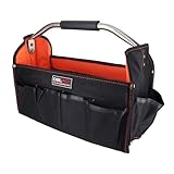 外側のポケットは入口の方が広がっているのでかなり何でも入ると思います。ただ、深さが10cmほどしかないので長い工具は脱落する可能性があるかも。