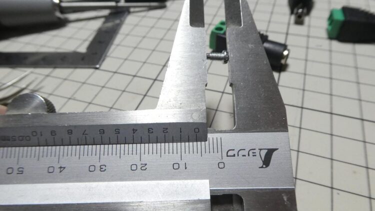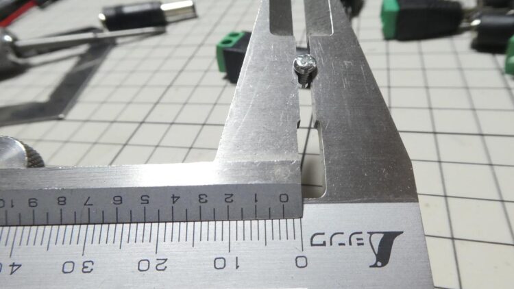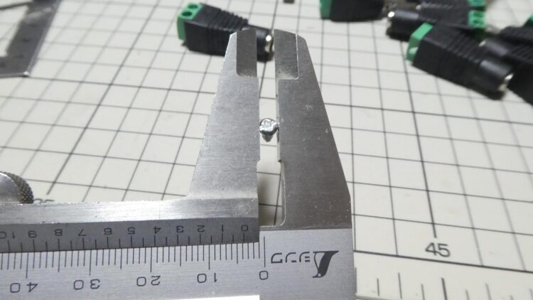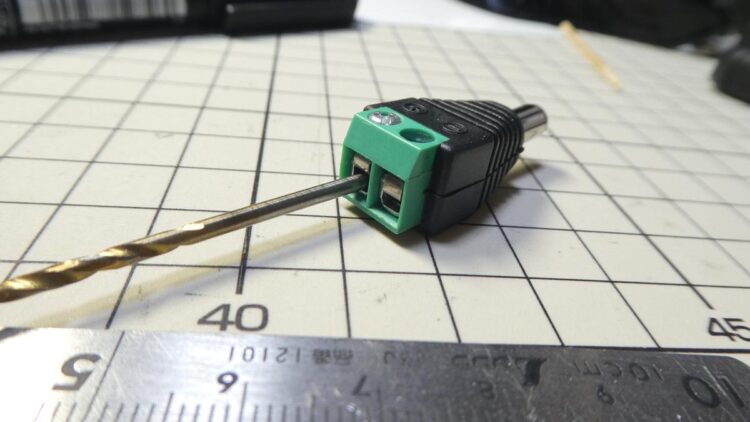 2mm径のドリルがどうにか挿さるくらい大きさです。テスターのテストリードの外径がちょうど2mmくらいなんですがそれがハマるくらいです。