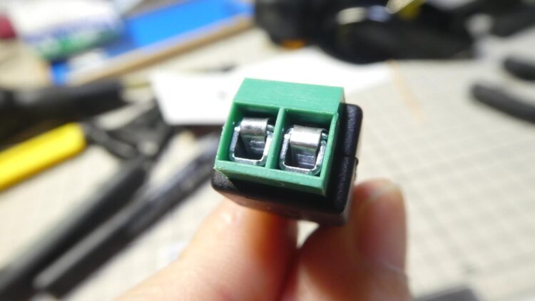 画像を見て気付きましたがプラス(赤)とマイナス(黒)の刻印がされていますね。因みにネジ穴径は 約 4 mm。