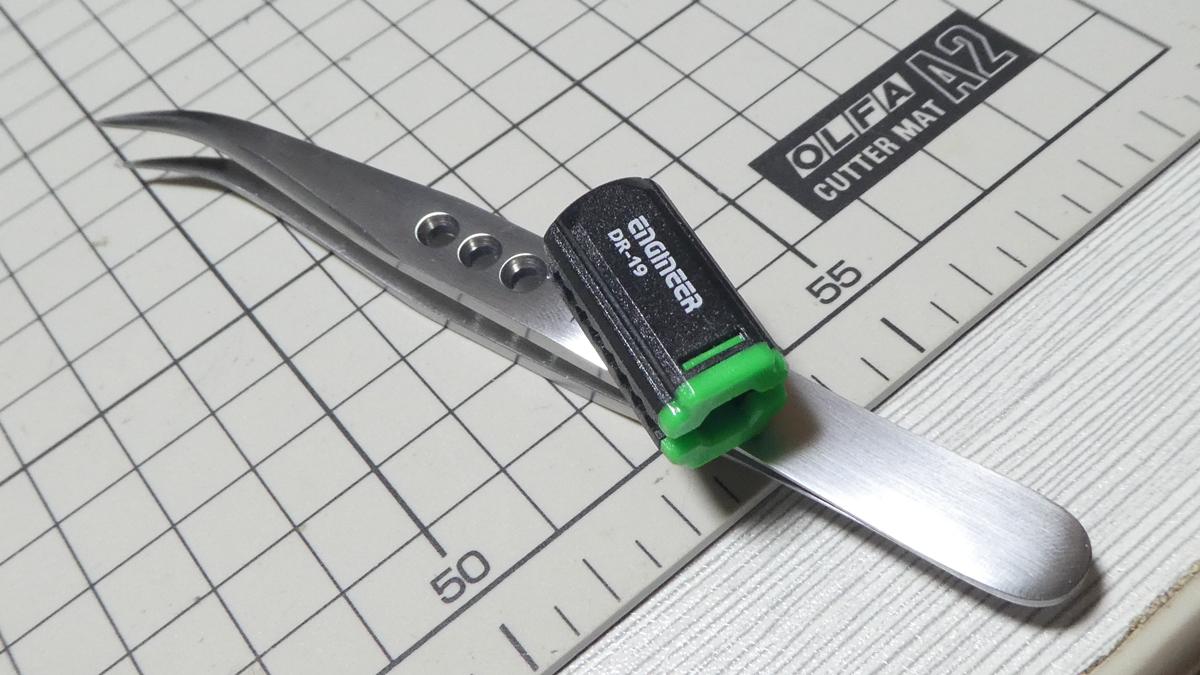 ネジを締めれば力を入れずに部品を保持できますが、やはりネジは手回しネジタイプにした方が作業効率が上がりますね。ピンセットの外側にばねを仕込めばねじを締めなくても掴めるようにもできそうです。