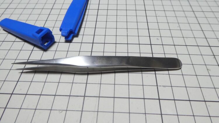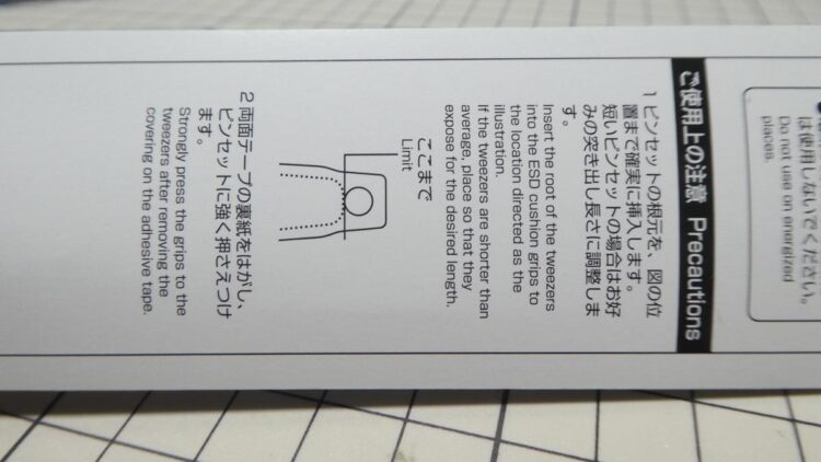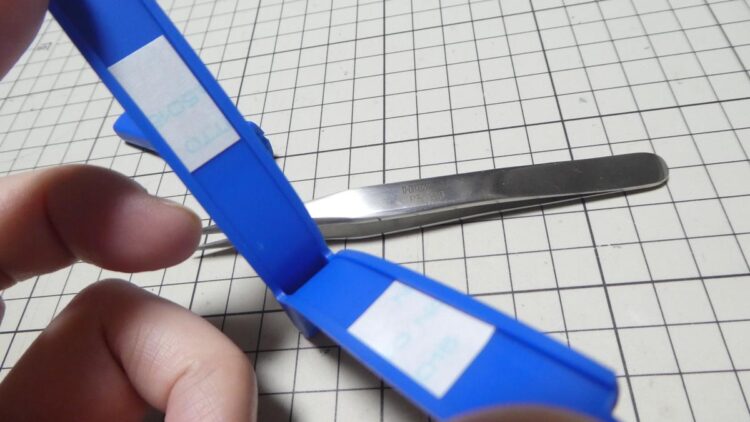 ピンセットのセッティングは、両面テープを剥がして隙間にピンセットを差し込むんですが、テープなしだと外装がブランブランするのでテープは必須です。