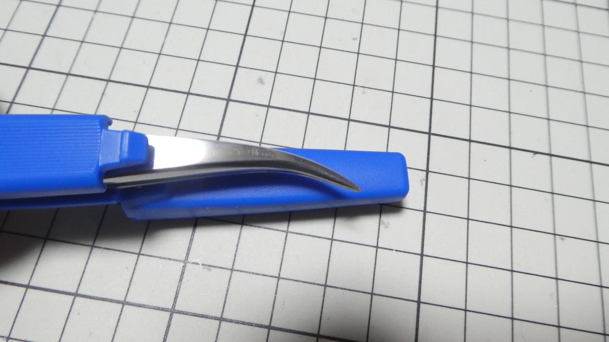 「PP-102」は板厚2.8mmの肉厚ピンセットですが、持ち手の部分はセットできました。