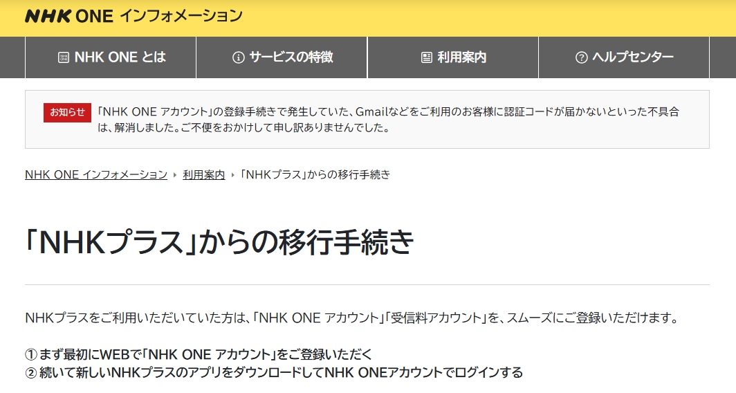 10月1日からNHKプラスが「NHK ONE(ワン)」に変わるのに対して手続きが必要みたいなのでやりました。スマホからもできみたいですがパソコンから行いました。