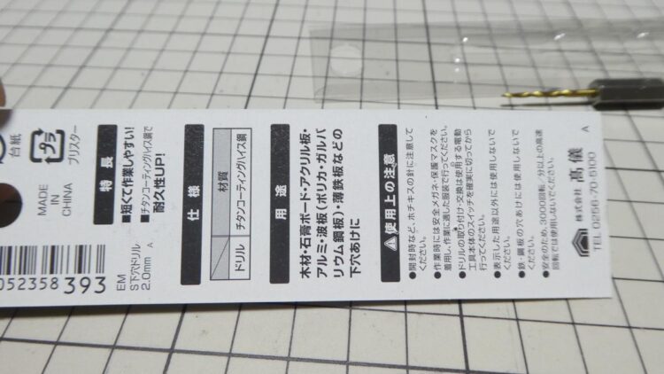 高儀 ちょっとだけ下穴ドリル 2.0mm 購入レビュー
