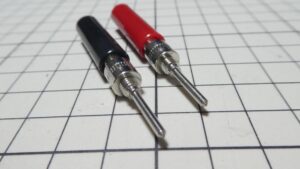 2mm径のテストリード(プローブ針)と連結できるコネクタを探しているんですがそんな中を見つけたサトーパーツの「チップジャック 赤 (TJ-2-J-R)」と「チップジャック 黒 (TJ-2-J-B)」を買ってみました。価格はマルツオンラインでひとつ84円でした。