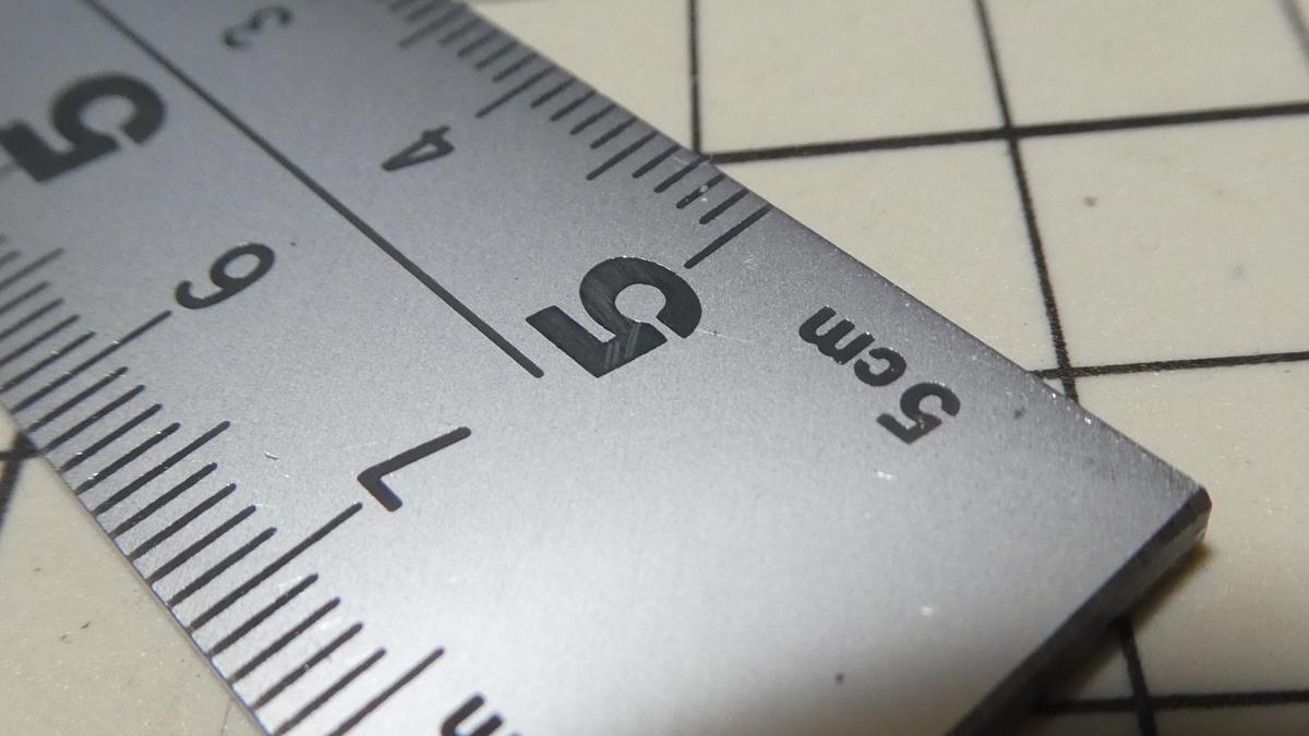 目盛りがすぐに消えそうな感じがしたんですが、触ったらちょっと段差があったのでそこは大丈夫そうです。あと数字は艶消しな感じで爪で擦ると線の跡が付きます。