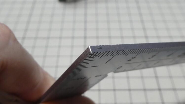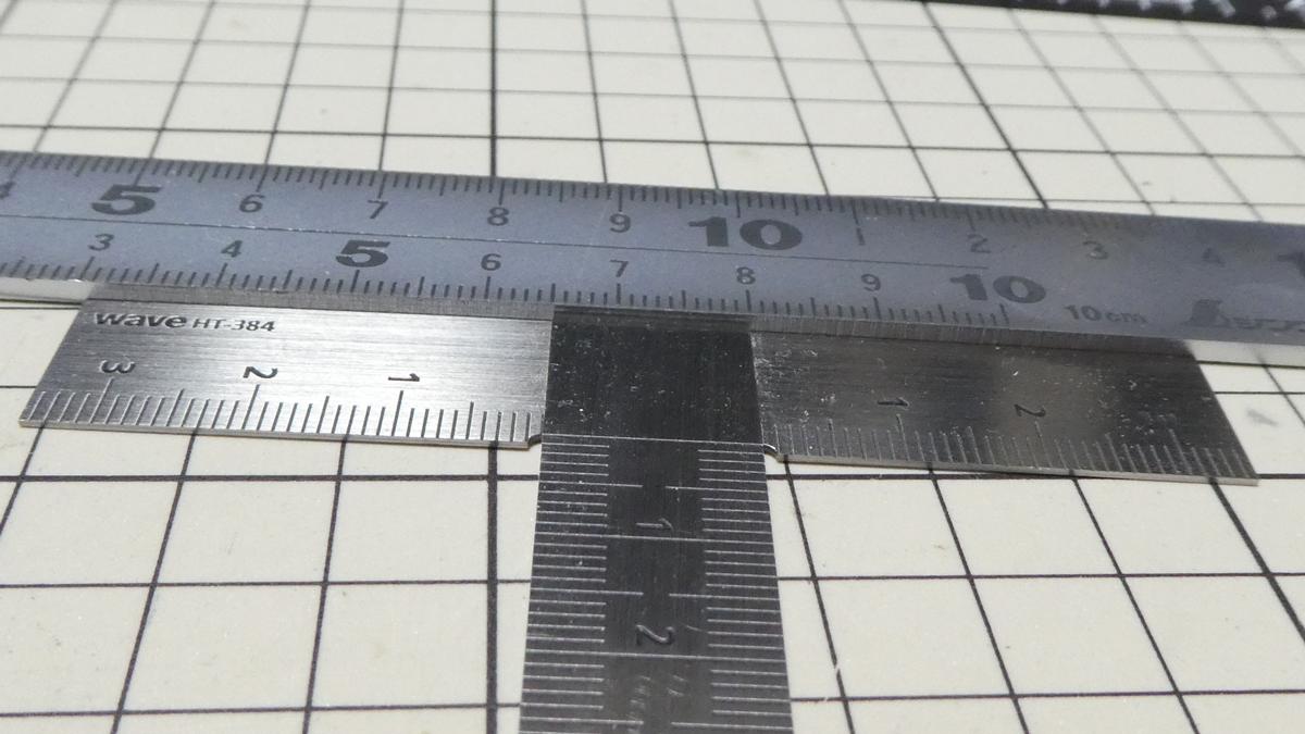 比較しているものはWAVE T定規なんですが、この商品は厚みが 約 0.6 mm と劇薄なのでこれだけ厚みが異なります。