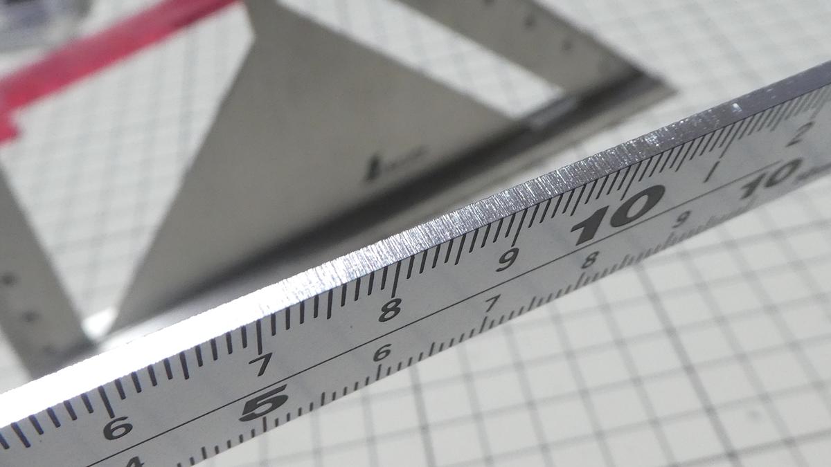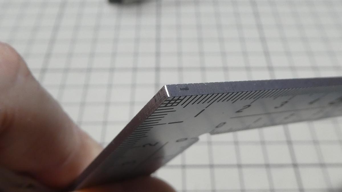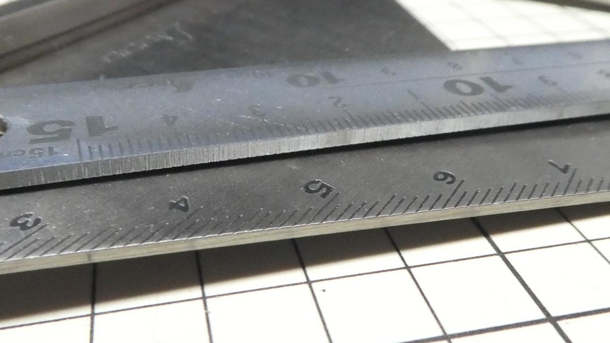 内側の目盛りはちょっとズレてるようにも見えますが当てた面が凸凹していれば影響しますし、そもそもどっちが正しいのかさえ分かりませんが、個人的には気にならないレベルです。
