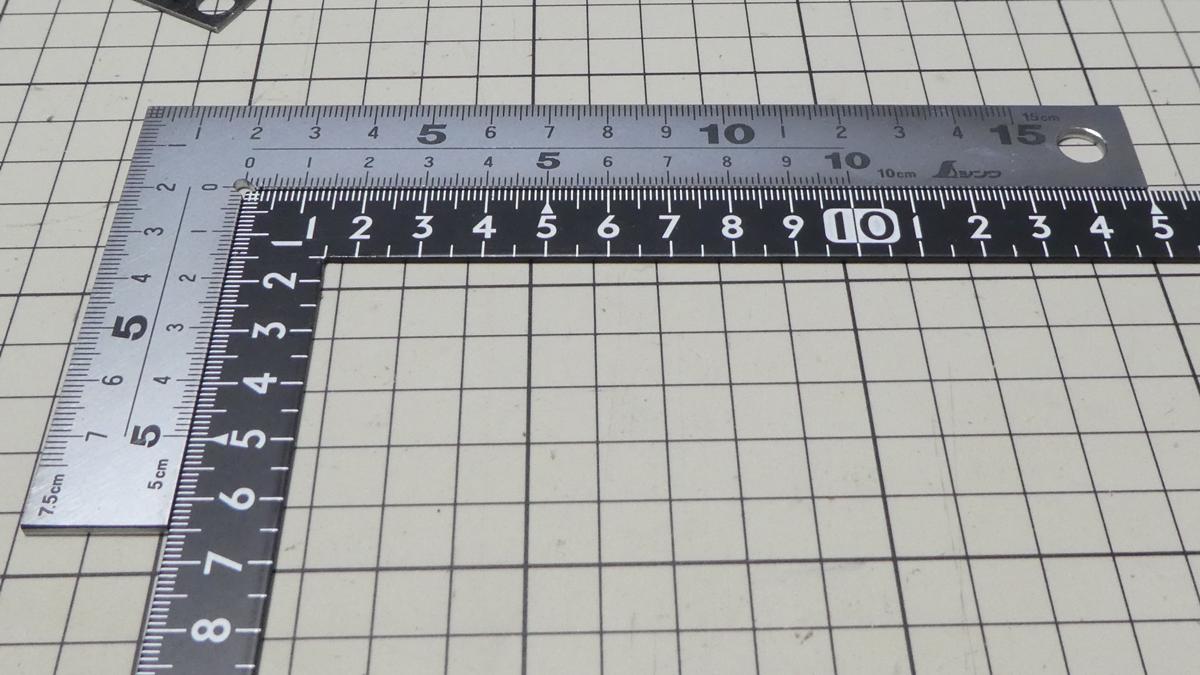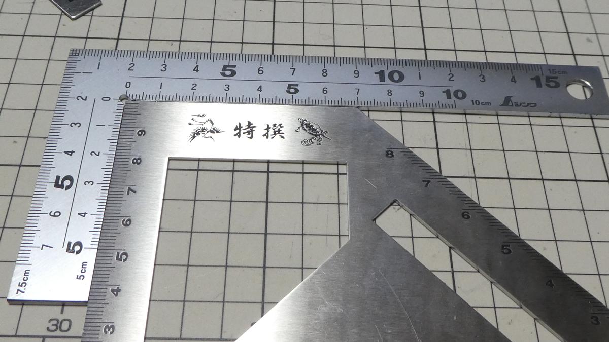 厚みは上図の「止型スコヤ 62081 」よりも厚い感じで、実際にノギスで測ったらそれぞれ2mm厚と1.5mm厚だったので0.5mmも厚かったです。