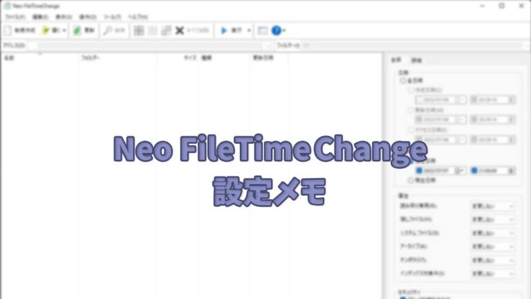 ファイルを配布することが多いので「Neo FileTimeChange」というソフトでタイムスタンプなどを一括変更しているんですが、そのソフトの設定を忘れるので備忘録(メモ)です。 オプション設定は「ツール」から開く。 …