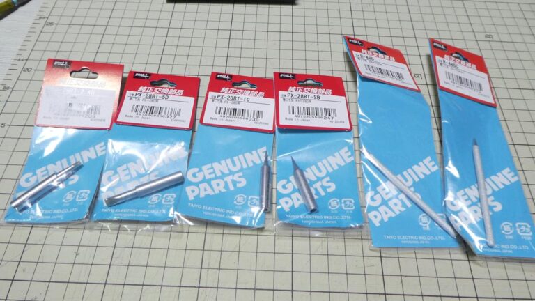 セラミックヒーターの半田ゴテ「PX-280」用のコテ先を5本(※下図には4本しか写っていません)、ニクロムヒーターの半田ゴテ「KS-30R」用のコテ先を2本購入しました。 PX-28RT-SB…