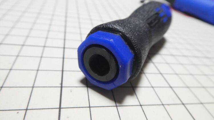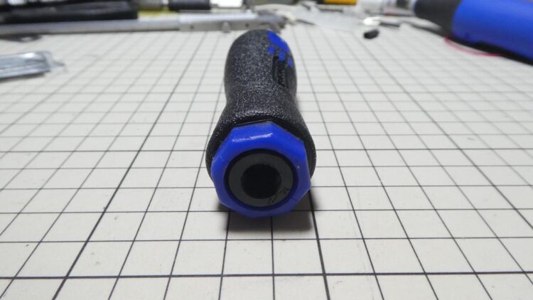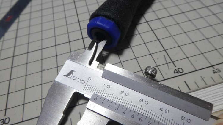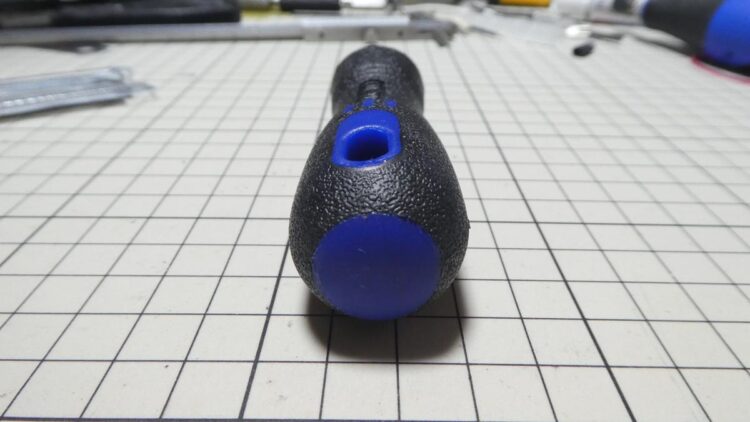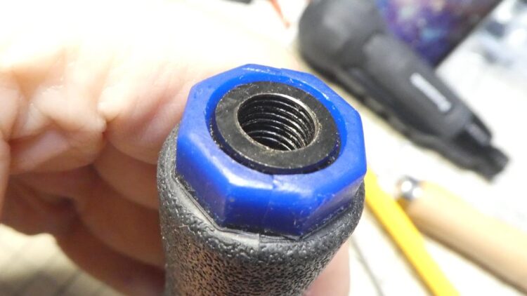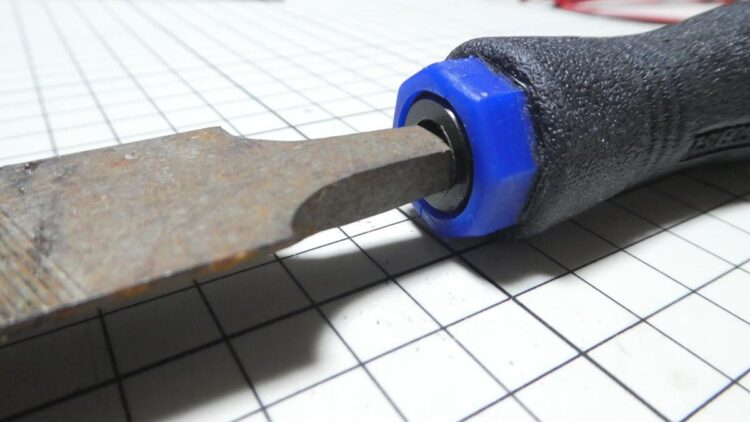 ヤスリの柄にはネジ山でキズがついたような跡が付いていたのでやはりタップダイスでネジ山を作っているようなイメージで固定されているんですね。差込口の外径が8.5mmほどなのでヤスリの柄差込部の幅がそれよりも太ければ固定できるとは思います。