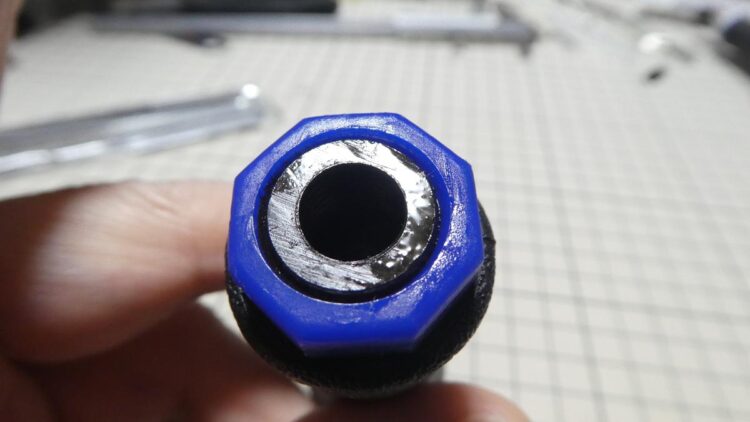 よく見ると段差がありそこにもネジ山が切られています。因みにライトが当たらずに撮影が難しかったので卓上バイスに固定して撮りました。