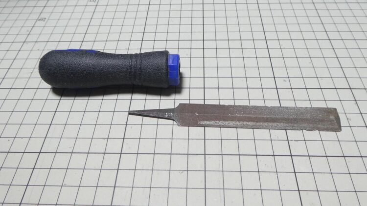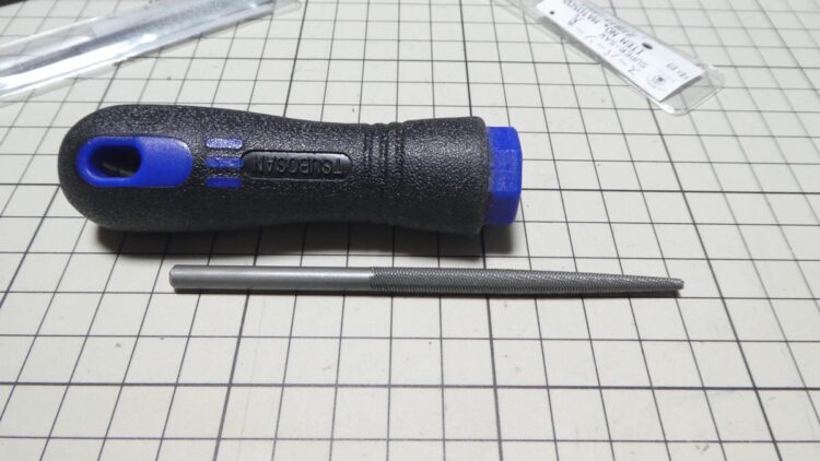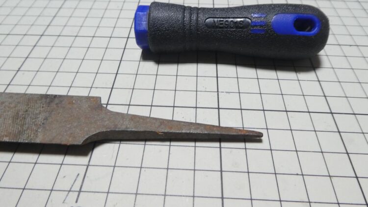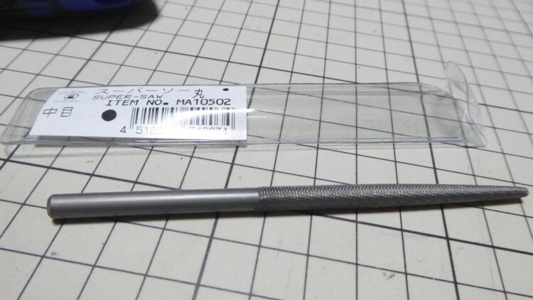 あと柄差込部30mmほどのノコギリの目立て用ヤスリがあったので差し込んでみましたがスカスカで固定できませんでした。