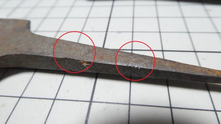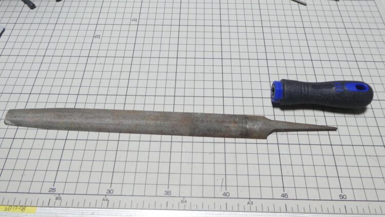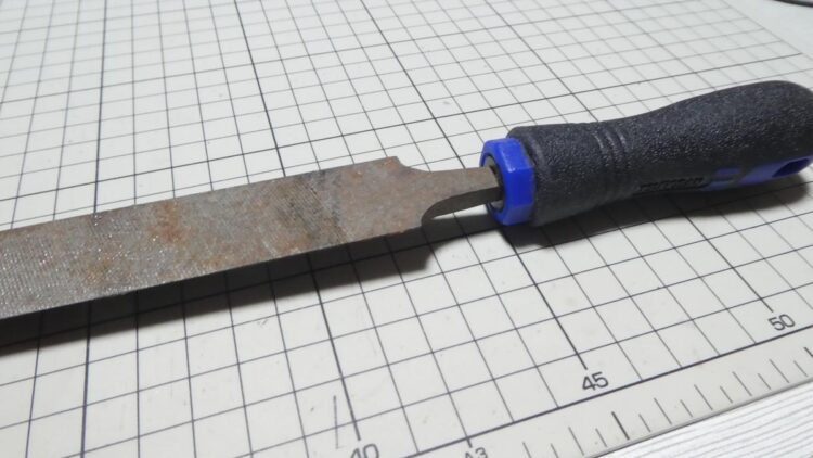 余談ですが、ヤスリメーカーって壺のマークのところがよくあるようなんですが、このヤスリにも壺のマークの中に「あ」の文字が刻印されていました。理由についてこちらの動画を見ると分かります。
