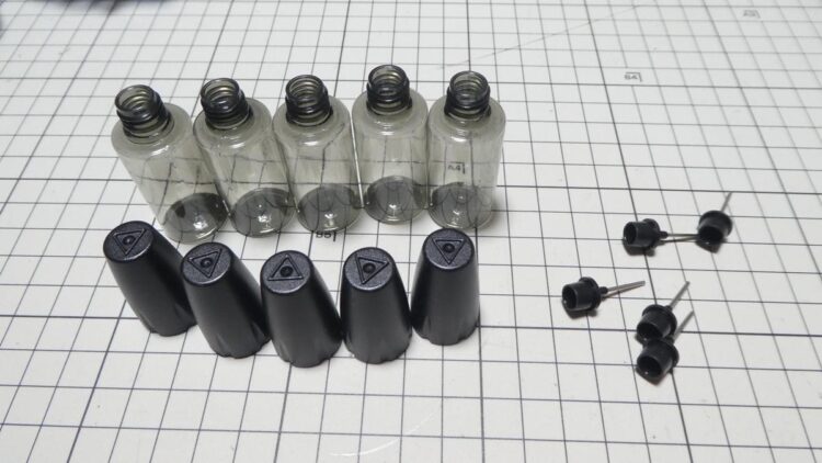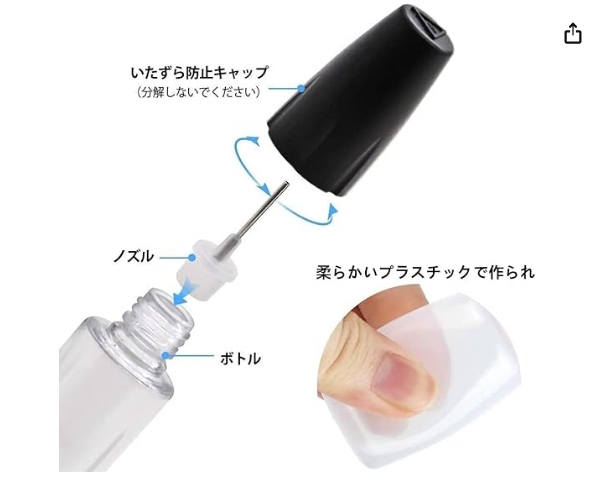 アマゾンで「サムコス ユニコーンボトル リキッド スポイト 針付き ボトル 接着剤 替え容器 液体 貯蔵用 DIY用 液体ドロッパーボトル 5個*10ml(ブラック)」を買ってみました。価格は550円。
