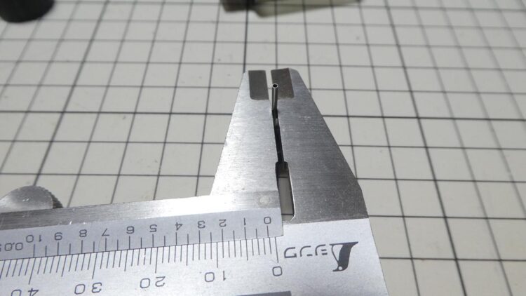 穴径は 0.9 mm のドリルがぴったりだったのでそのくらいだと思います。