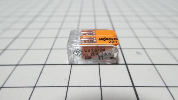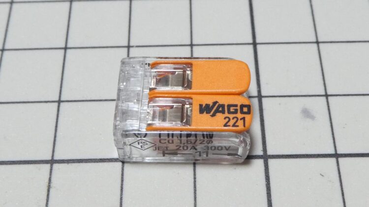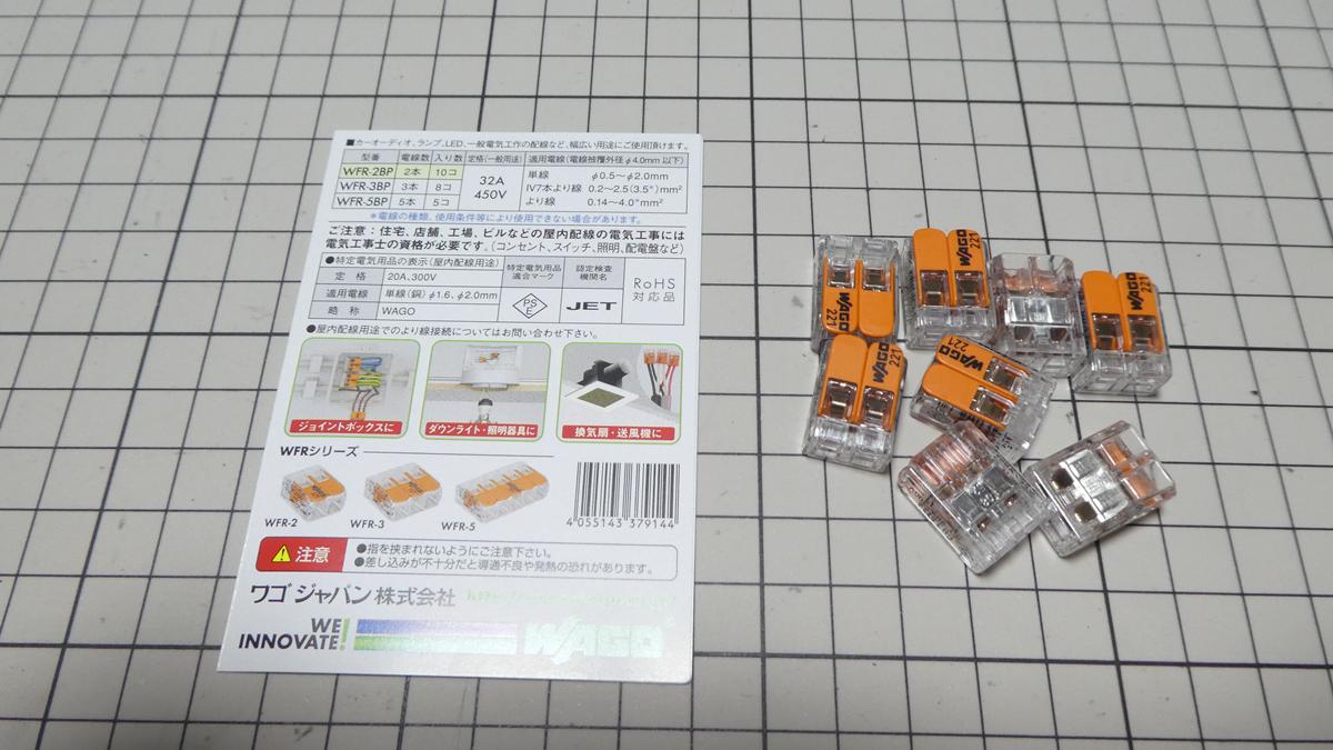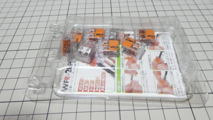 ワゴとは電線と電線を接続したり分岐したりするもので、先日購入したホーザンの絶縁閉端子用圧着工具「P-736」などの圧着工具なしで電線を繋ぐことができるコネクタです。